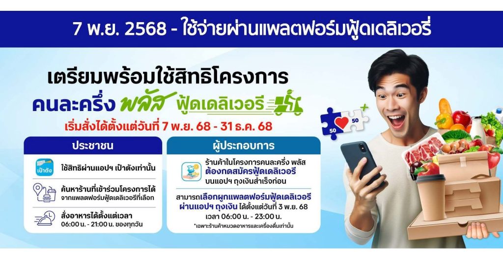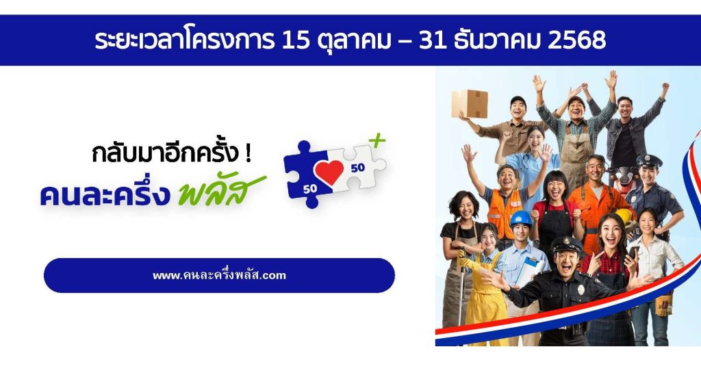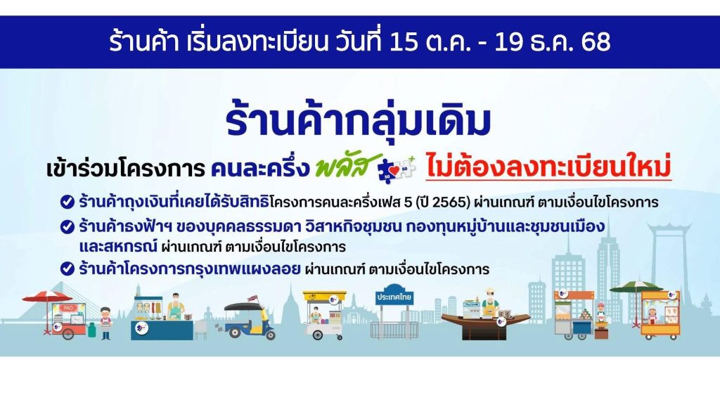 ประชาสัมพันธ์ เชิญชวนผู้ประกอบการร้านค้าในพื้นที่ เข้าร่วมโครงการคนล่ะครึ่ง พลัส 28/11/2025 ประกาย ย Leave a comment ข่าวประชาสัมพันธ์