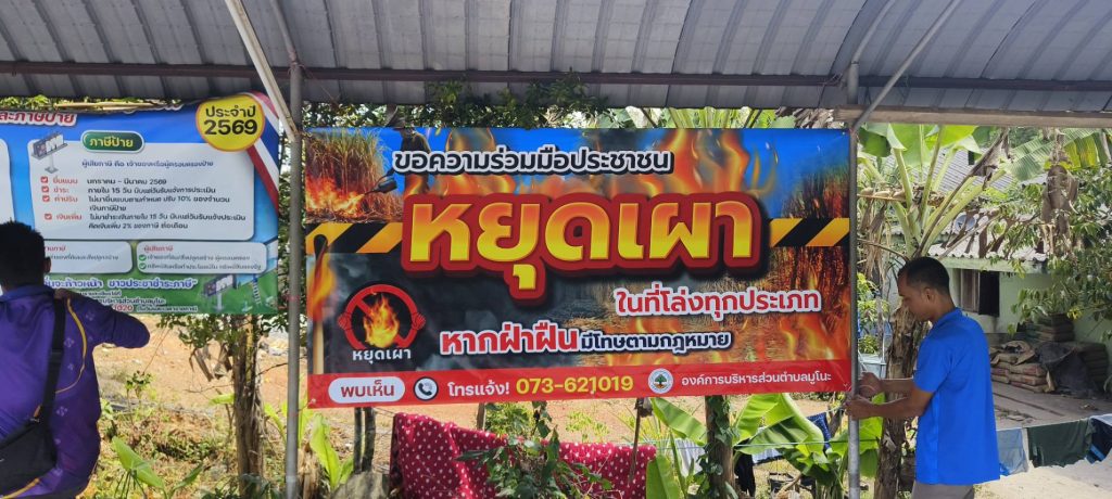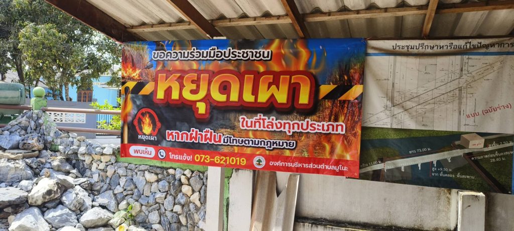 ขอความร่วมมือประชาชนตำบลมูโนะ หยุดเผา หยุดหมอกควันพิษ เพื่อลดหมอกควัน และการเกิดPM2.5 ที่ส่งผลเสียต่อร่างกาย งานป้องกันและบรรเทาสาธารณภัย ออกติดป้ายรณรงค์ ประชาสัมพันธ์หยุดเผาป่า เพื่อช่วยกันรักษาสิ่งแวดล้อมทางอากาศ