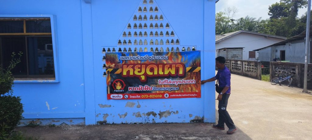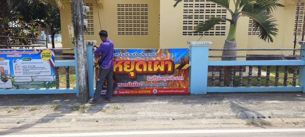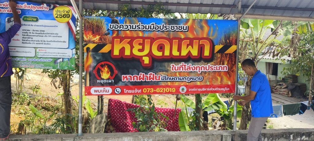 หยุดเผา หยุดหมอกควันพิษ เพื่อลดหมอกควัน และการเกิดPM2.5 ที่ส่งผลเสียต่อร่างกาย งานป้องกันและบรรเทาสาธารณภัย ออกติดป้ายรณรงค์ ประชาสัมพันธ์หยุดเผาป่า เพื่อช่วยกันรักษาสิ่งแวดล้อมทางอากาศ