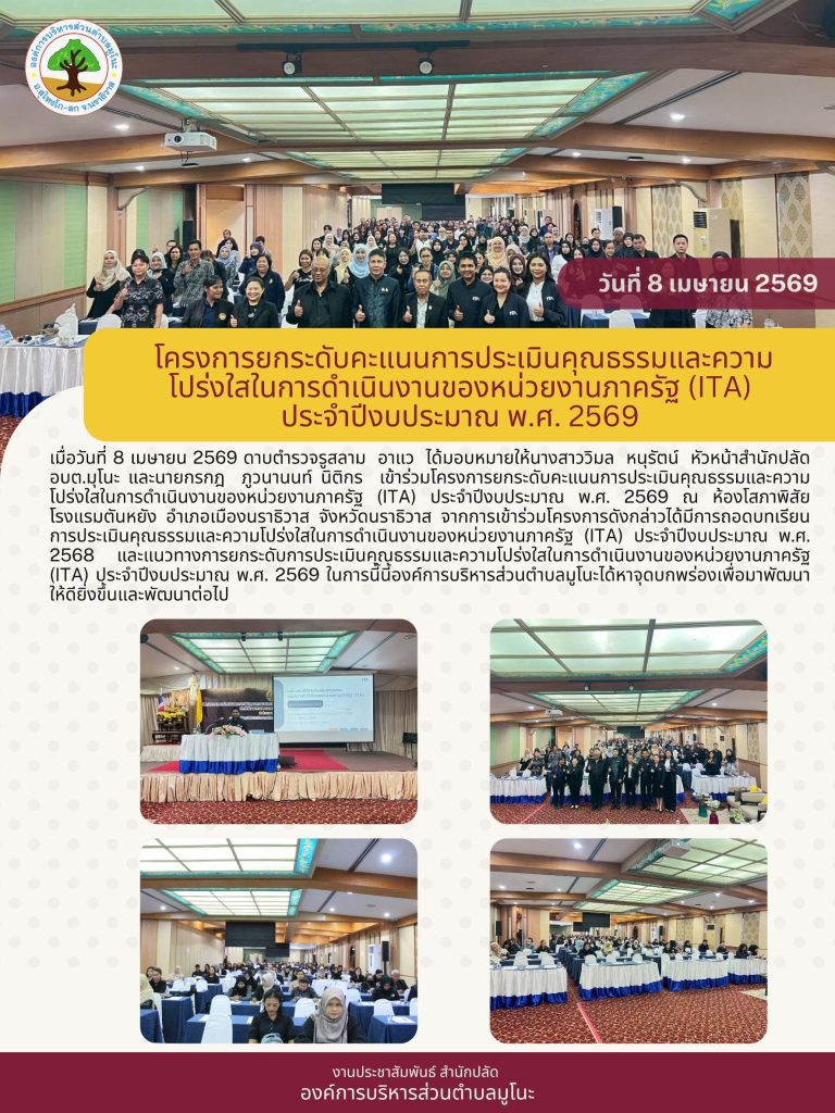 เข้าร่วมโครงการยกระดับคะแนนการประเมินคุณธรรมและความโปร่งใสในการดำเนินงานของหน่วยงานภาครัฐ (ITA) ประจำปีงบประมาณ พ.ศ. 2569
